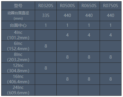 圓形擴(kuò)展臺(tái)具有良好的頻響特性,其臺(tái)面螺釘分布符合上表標(biāo)注尺寸。