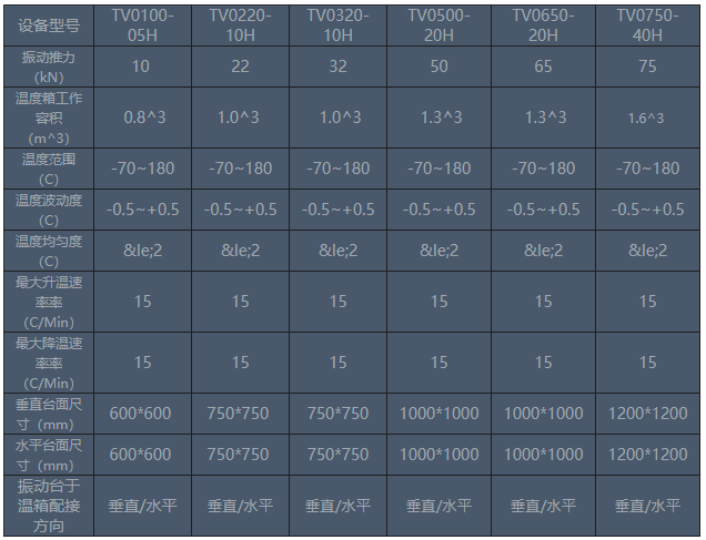 推力:10-75kN,容積:0.5-4立方1、汽車零部件雙向溫度(濕度)振動(dòng)綜合試驗(yàn)系統(tǒng)